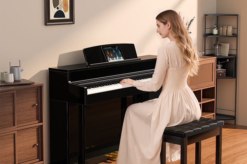 通過材料創(chuàng)新與工藝優(yōu)化,更接近傳統(tǒng)鋼琴的自然觸感,深度還原鋼琴的琴鍵配重、下鍵深度回彈速度,觸底感更強(qiáng),靈敏響應(yīng)每一次觸鍵,無論您如何彈奏重或輕,快或慢,每個(gè)琴鍵動(dòng)態(tài)都響應(yīng)精準(zhǔn),準(zhǔn)確契合手指的細(xì)膩?zhàn)兓瑢?shí)現(xiàn)音色和音質(zhì)的細(xì)膩?zhàn)兓M(jìn)一步還原鋼琴穩(wěn)定扎實(shí)的出色手感。 |
